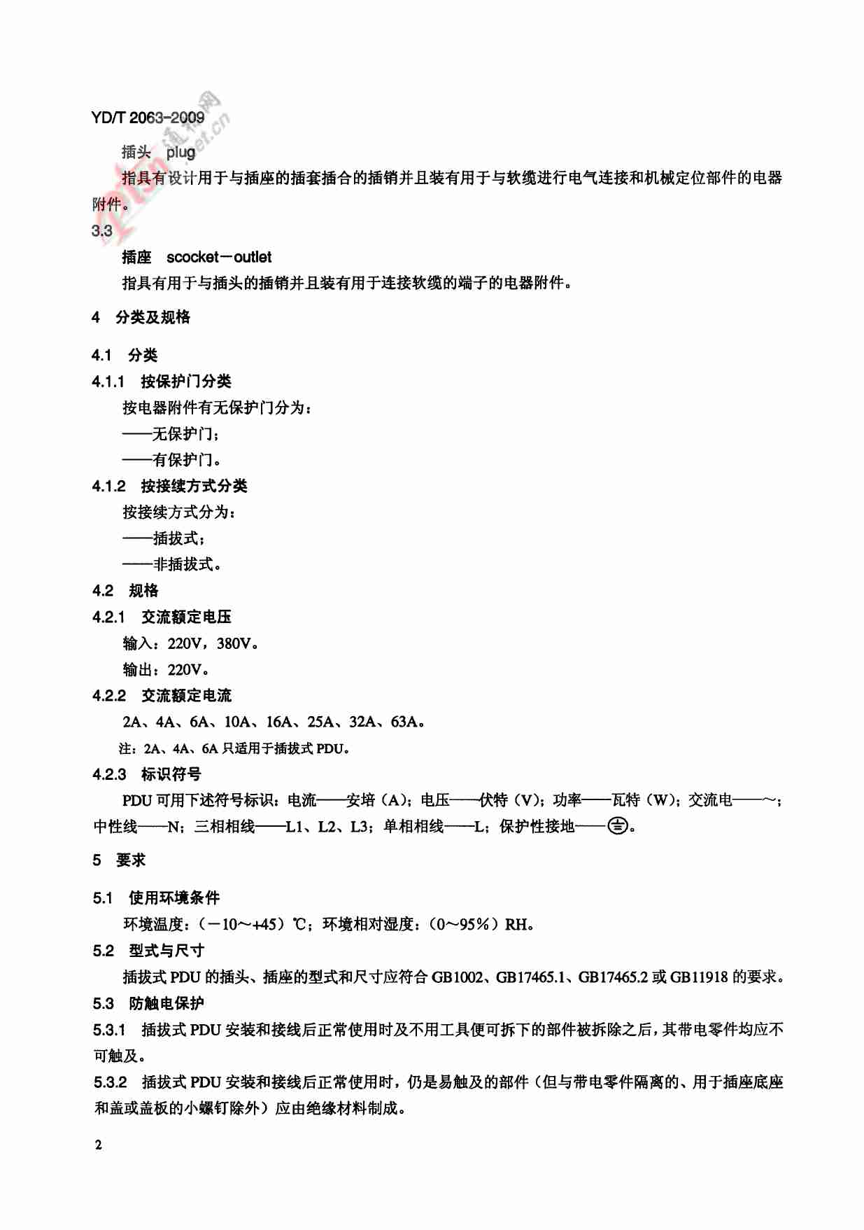 该标准规定了通信设备用电源分配单元的技术要求、试验方法和检验规则,确保产品安全可靠并满足行业应用需求。