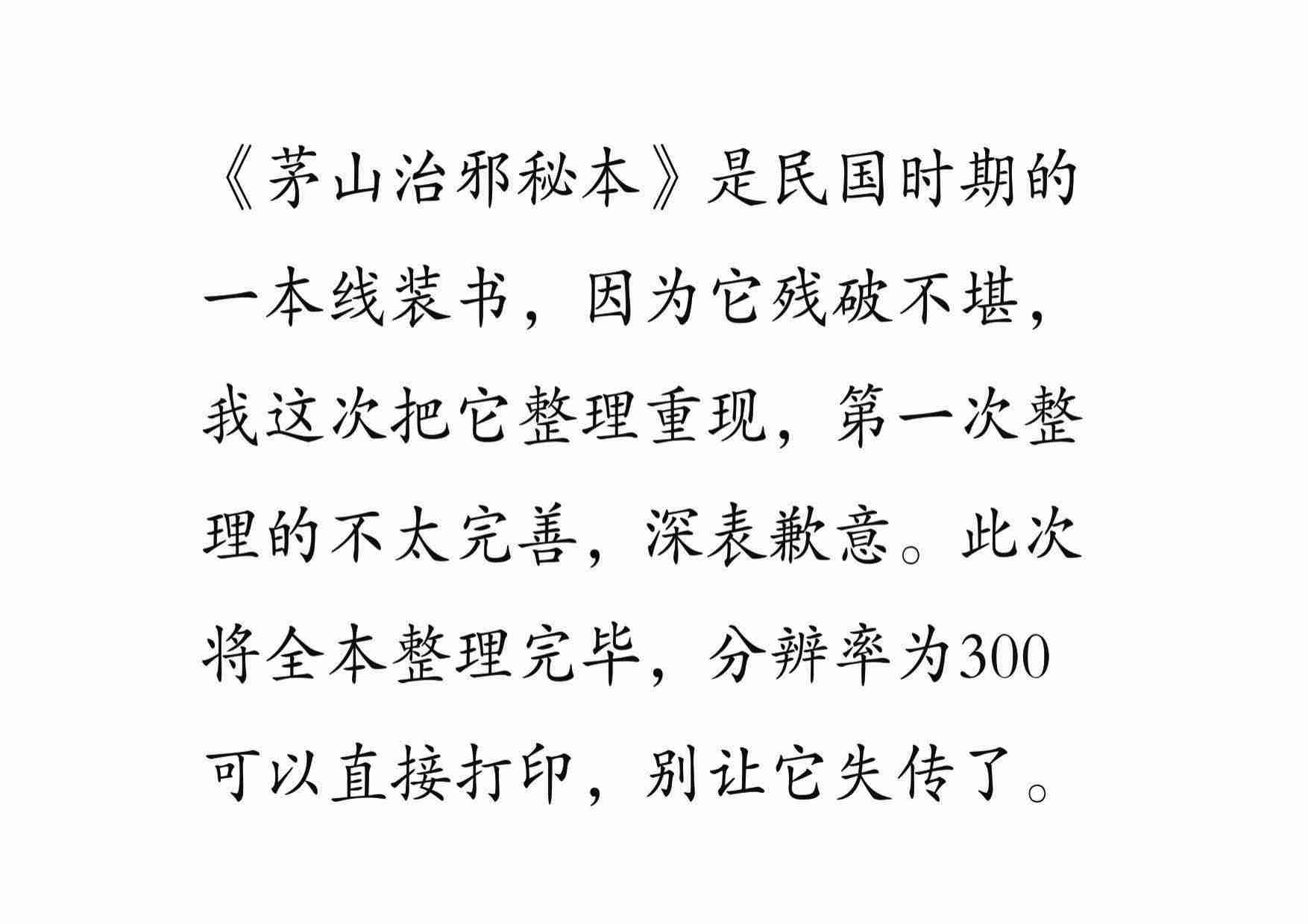 《茅山治邪秘本》完整版收录茅山派符咒秘术,涵盖驱邪镇煞、治病禳灾之法,乃研究道教法术与民间信仰的重要古籍文献。